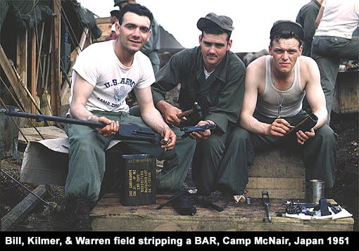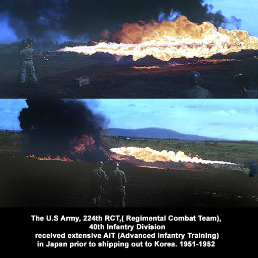 Bill served with the 224th Regimental Combat Team, 40th Infantry Division as a rifleman, radio-communications operator and official unofficial photographer. During 1951, the 224th was part of the Army's occupational force in Japan where they were received extensive Combat Team training. His camera records this training which later they would use in North Korea during 1952.