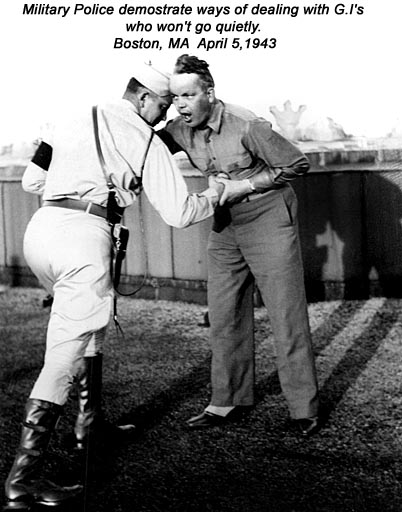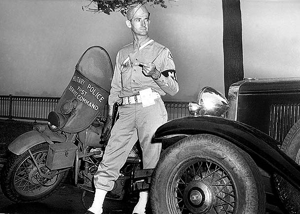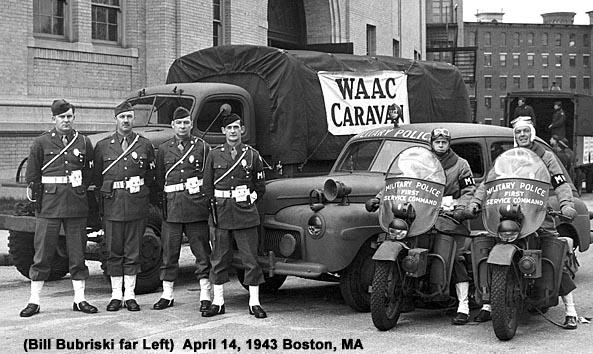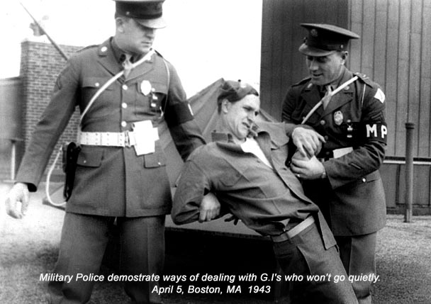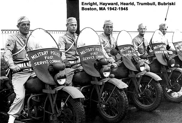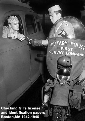 - US Army, Pvt. WWII, 1942-1945. Military Police, Headquarters- First Service Command. Boston MA. Primary duties in enforcing civil or military law among the many military services stationed, on leave or transporting through Boston, Massachusetts.