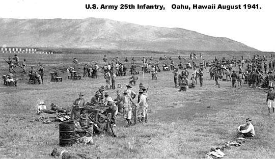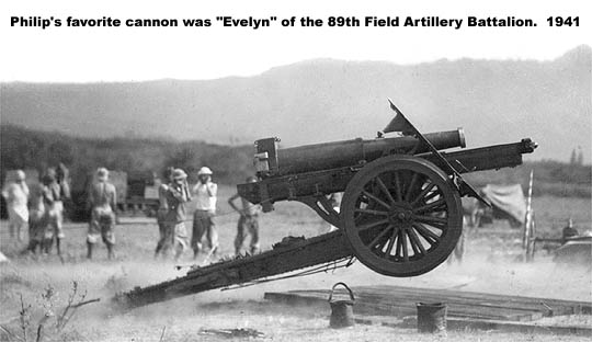 In May 1941, Philip was in for the duration of WWII. Stationed at Schofield Barracks, on December 7th, 1941 the day the Japanese attacked Pearl Harbor, Hawaii, he continued through the Pacific campaigns such as Gaudalcanal, Northern Solomon and Luzon. He served as a Ssgt in the 89th Field Artillery, 25th Infantry with a specialty of ammunition and weapon maintenance. Interesting images of the 25th Infantry in training and later in more obscure locations. Discharged Aug. 1945.