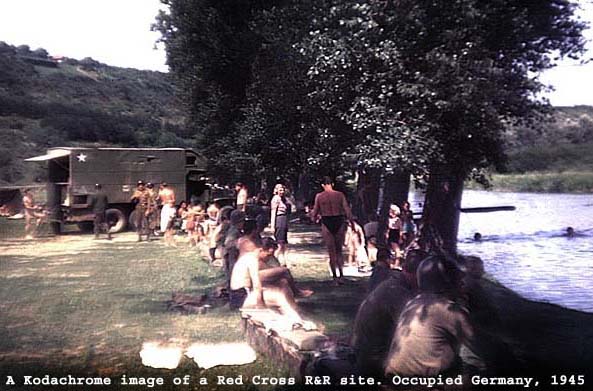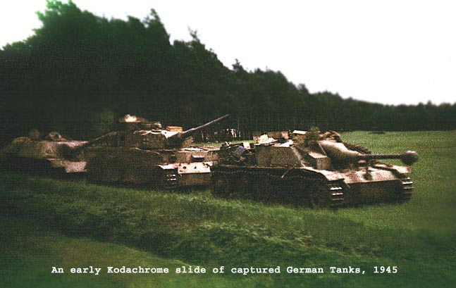 Sergeant Warren Abele served with the 33rd Armored Engineer Battalion, 7th Armored Division ("The Lucky Seventh") of the 3rd Army. His access to a Kodak folding 127 camera and a 35mm Argus camera provides us this unique pictorial from Utah Beach in 1944, across France, into the Ruhr Valley and Germany, pursuing the German Army until their surrender in May 1945. Very unique are a few color Kodachrome slides from that era.