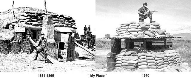 The Williamstown House of Local History possess original Lantern slides which were photographed during the Civil War from 1861-1865. These images have been placed next to contemporary Veterans images. Over 100 years have lapsed between these images, but the environment for each photographer resembles each other in many ways.